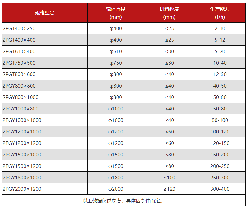 2PGY1000×800 進(jìn)料粒度≤40(mm) 出料粒度≤3 (mm) 生產(chǎn)能力50-80(t/h)